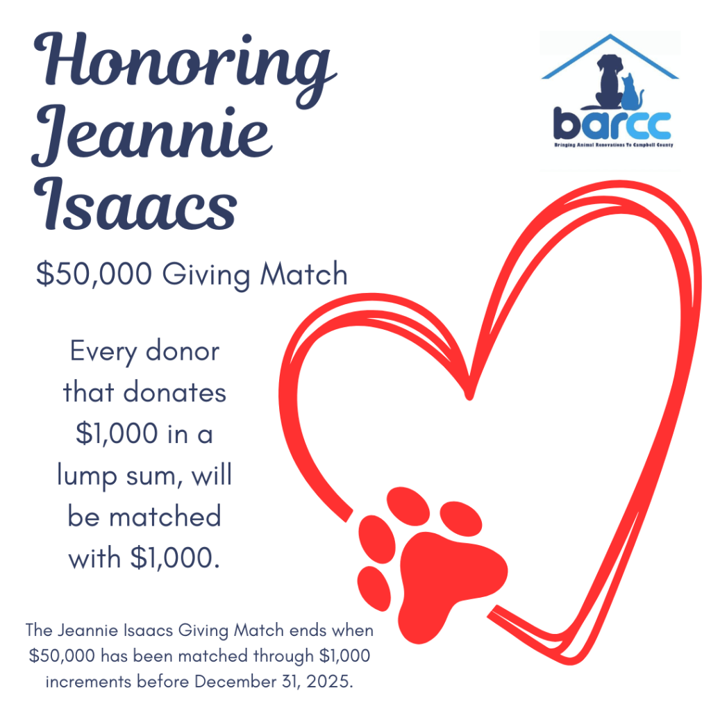 Jeannie Isaacs Giving Match: Every donor that donates $1,000 in a lump sum (or a group that presents $1,000 together at one time) will be matched until December 31, 2025 or until $50,000 is donated by our generous anonymous matching donor.