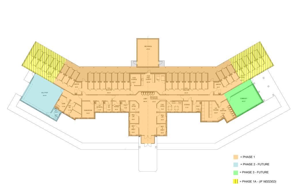 BARCC hired Dominion Seven Architects to meet and gather input from Campbell County Animal Control, Friends of Campbell County Animal Control, and Campbell County Administration for a new animal shelter. Below are the current conceptual designs based on multiple meetings and edits with all groups.